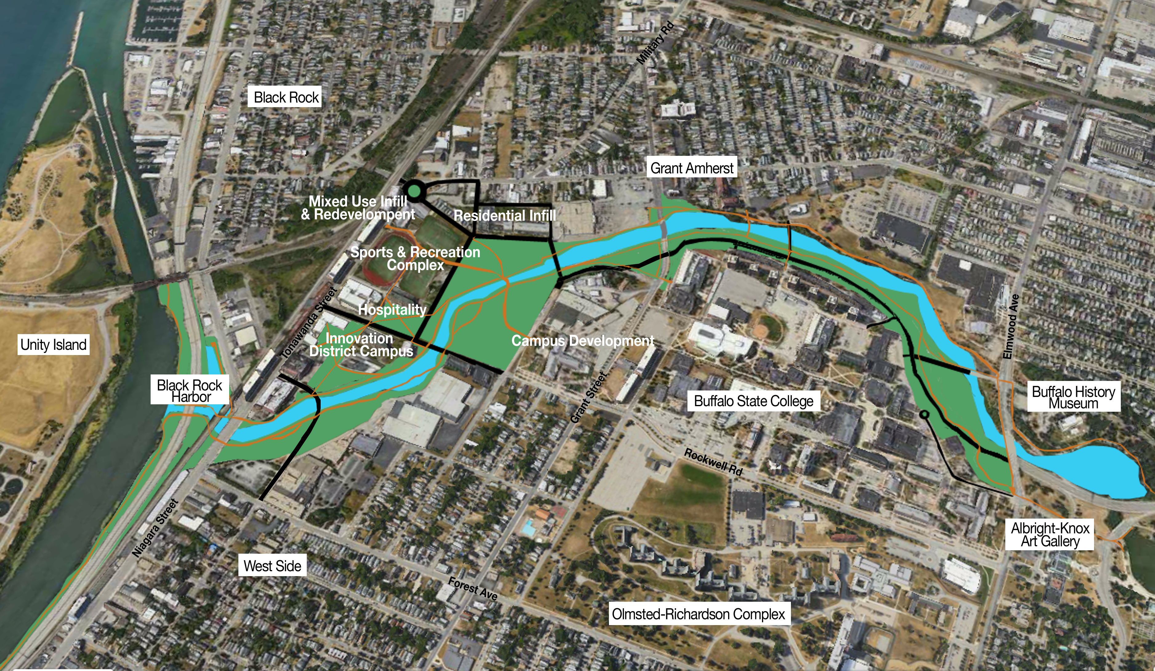 The project resulted in a white paper and presentation for alternative visions for the Western Scajaquada. Both the position paper and the presentations and renderings are available on our website.